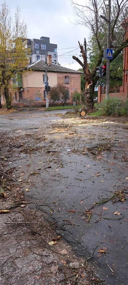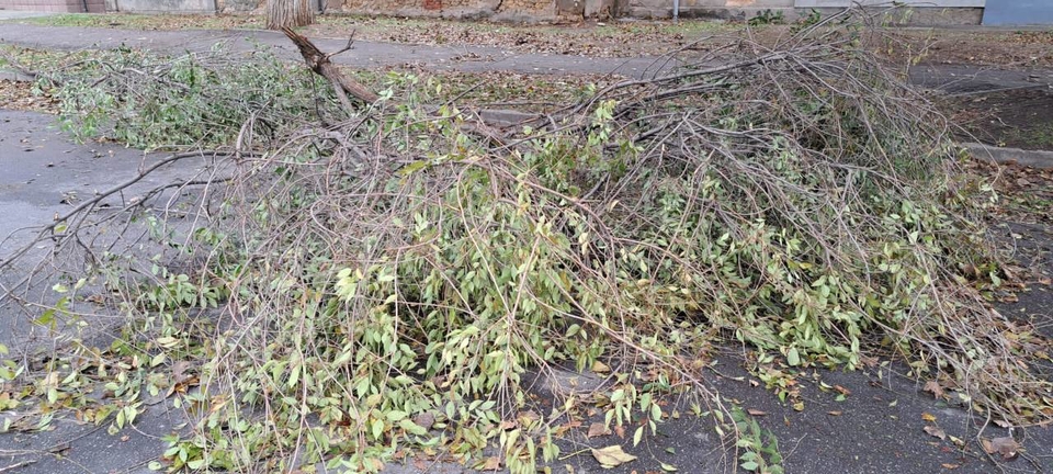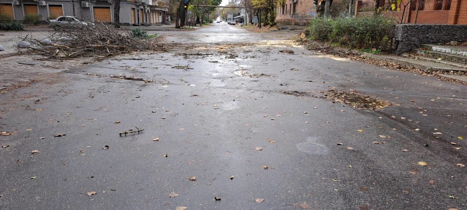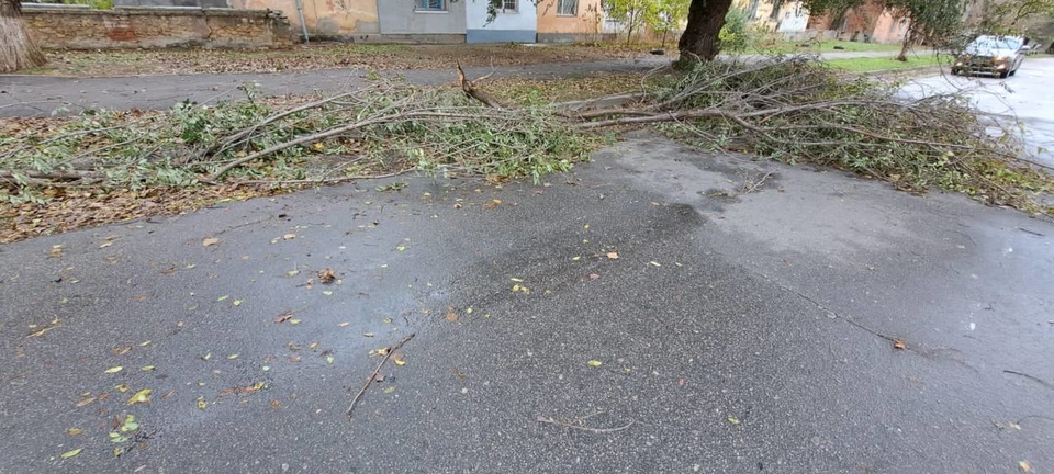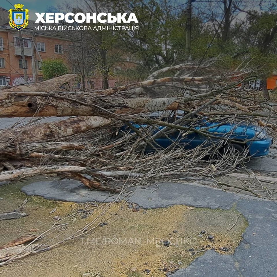 «Додає херсонським комунальникам роботи і негода, яка вирує другу добу. У центральній частині міста вітер повалив дерева, обмеживши рух транспорту», - написав Мрочко.