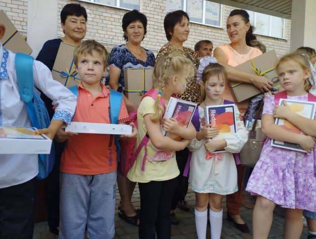 Приємним сюрпризом для присутніх стали подарунки: 14 планшетів та рюкзаків з канцелярським приладдям для першокласників, батут для діток громади.