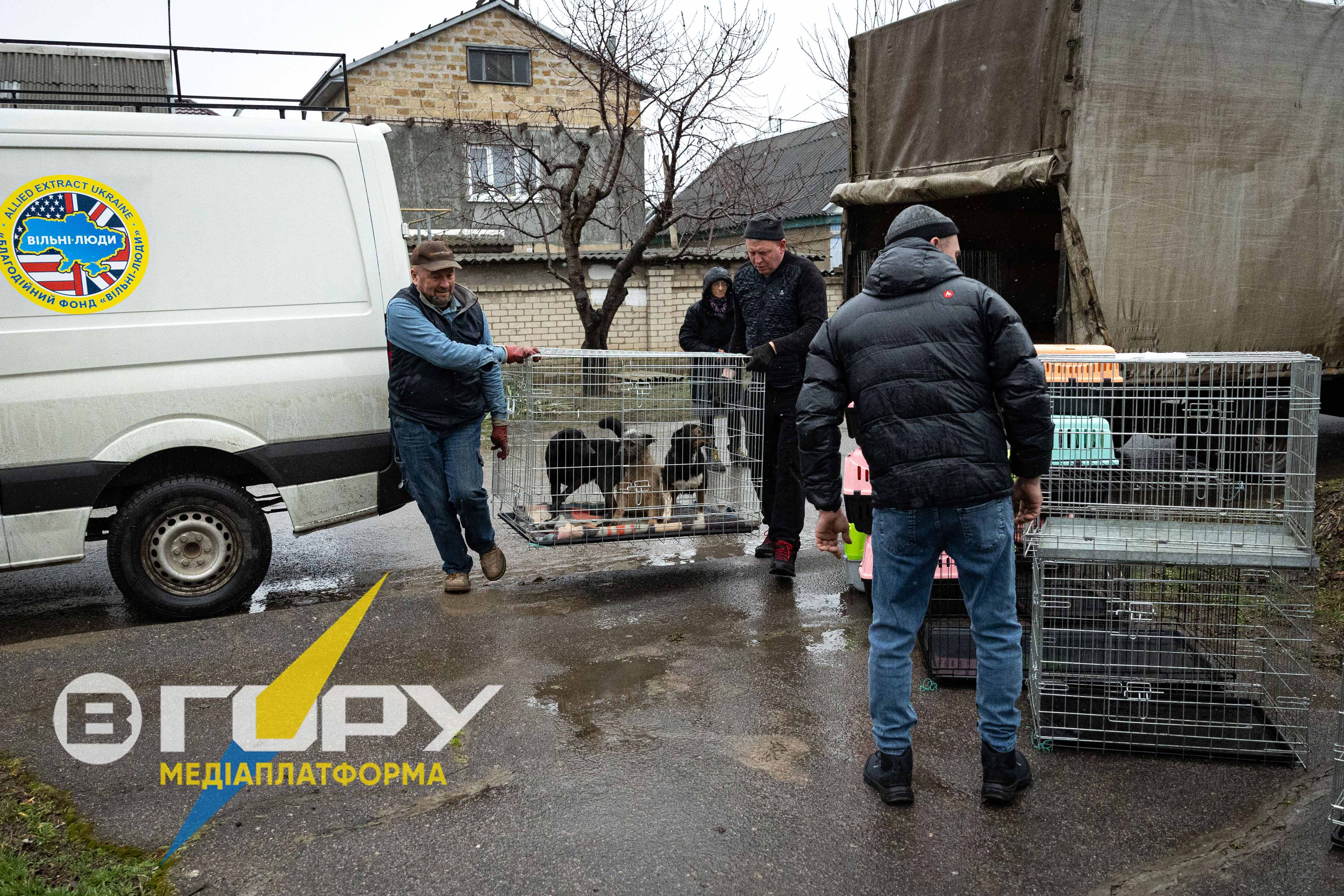 14 лютого волонтери Сергій з організації "Вільні люди" та Ростислав – "Сильні, бо вільні", а також водій Віктор евакуювали з Токарівки Херсонської області подружжя та їхніх 15 собак і 20 котів.Фотокореспондент Медіаплатформи “Вгору” Олександр Корняков був разом із волонтерами та зафіксував евакуацію тварин.
