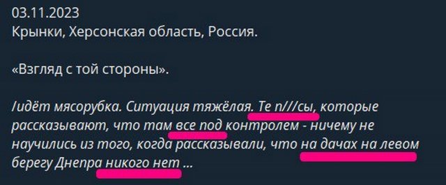 Кадри масового забою російських окупантів на лівому березі Дніпра Херсонської області виклав у своєму телеграм-каналі журналіст Денис Казанський.Немає чому дивуватися, тому що славнозвісні "м'ясні штурми" армії РФ завжди закінчувалися однаково – шаленими втратами. А, як відомо, життя простих росіян ніколи не мало цінності для Володимира Путіна та військово-політичного керівництва РФ.