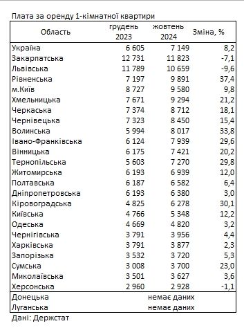 За рік вартість оренди значно збільшилась у деяких регіонах, особливо у Хмельницькій (на 21,2%), Черкаській (на 18,3%) та Чернівецькій областях (на 15,4%).
