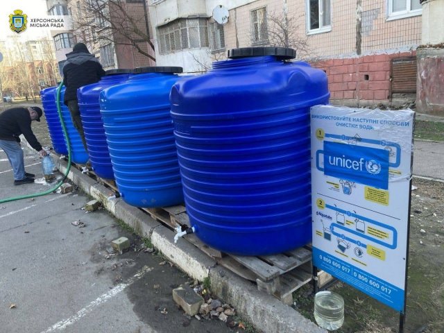 Херсонська міська військова адміністрація разом з UNICEF продовжує забезпечувати жителів міста Херсона питною водою.Про це повідомляє Херсонська МВА,