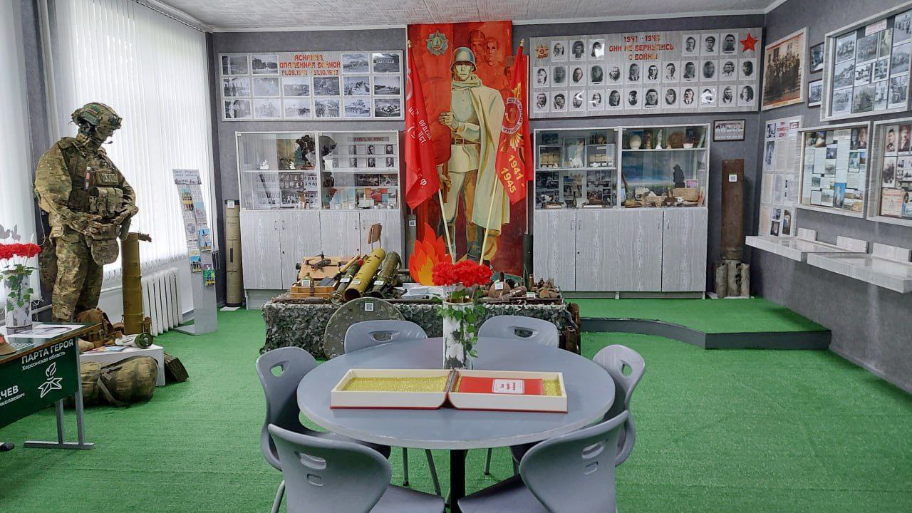 «З відкриттям школи у листопаді 2024 року зусиллями працівників закладу був проведений ремонт приміщення, оформлені виставкові стенди, оновлений і реставрований експозиційний матеріал», – написало «міністерство». «Оновленим матеріалом» назвали «експонати, які відображують спеціальну військову операцію».