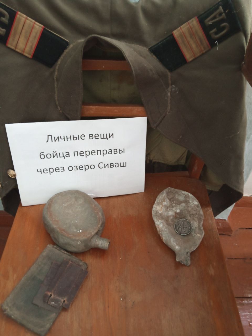 В окупаційному Новопокровському шкільному музеї побувала голова окупаційного комітету ветеранів Новотроїцького «муніципального округу» Ганна Кучанська, яка «висловила слова вдячності за патріотичне виховання молоді». Серед експонатів, які вона змогла побачити, були «особисті речі бійця переправи через озеро Сиваш». Щоправда, погони на «особистій» формі бійця – чомусь післявоєнного зразка.