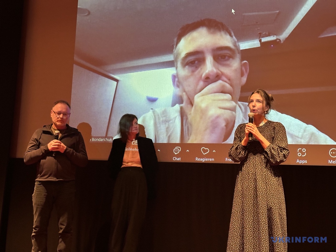 Після показу глядачі мали можливість поставити запитання актору Андрію Кирильчуку та режисеру стрічки Роману Бондарчуку, який під'єднався онлайн.