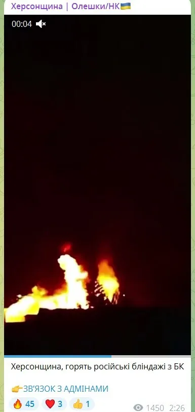 У мережі писали, що на окупованій частині Херсонської області палають російські бліндажі з БК.