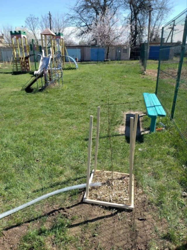 Також дерева висаджували і на дитячому майданчику. Акція з озеленення продовжиться у понеділок.