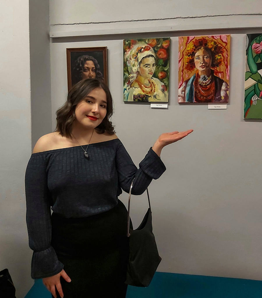 «Гривна» розповідала про Олю Мітелку, яка ще в окупованому Херсоні розпочала серію своїх робіт про красу українських дівчат. Першу картину, яка має назву «Україночка», дівчина не змогла вивезти із собою з окупації. Проте наступні роботи з колекції мисткиня представляла на виставках, зокрема в Черкасах та в Слупську.На початку цього року Оля приєдналася до мистецького «Клубу Пластика», який функціонує в Слупську. У лютому вона брала участь у виставці «Мистецький перегляд Клубу Пластика», де представила дві свої картини – портрети українок, повідомляло «Суспільне».