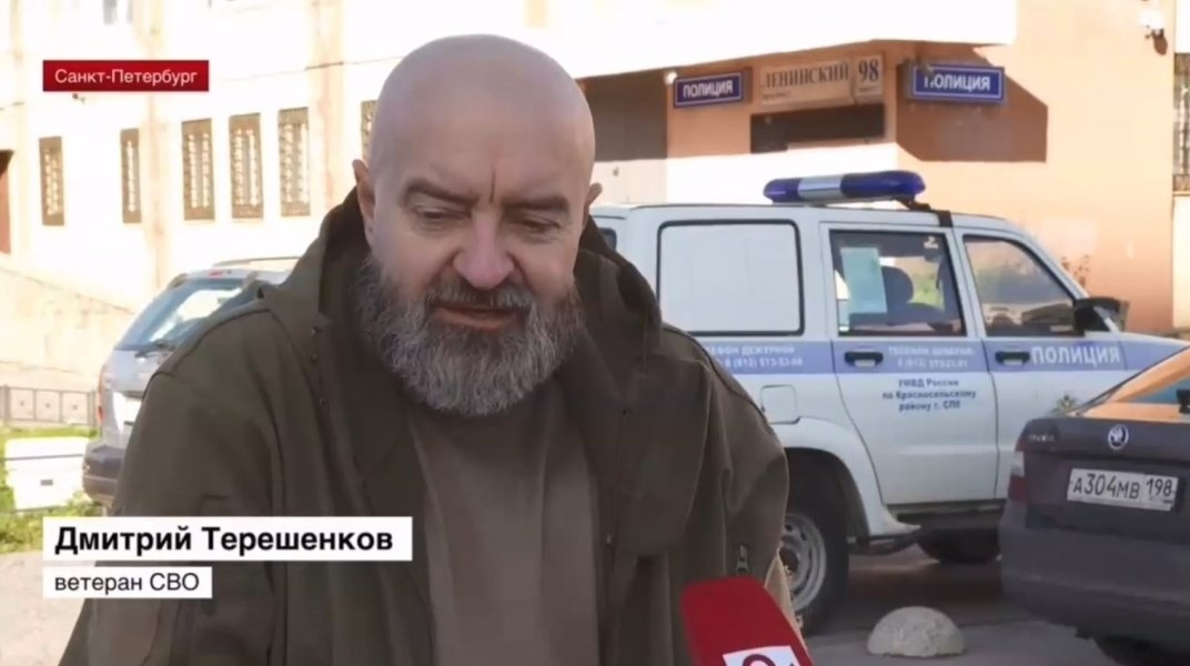 У замітці розміщено фрагмент репортажу з російського телеканалу, в якому розповідають про напад на "ветерана" Дмитра Терешкова. Напад стався о 01:33 2 жовтня. На відео з камер спостереження видно, як до чоловіка на милицях підбіг невідомий у чорній куртці та почав його штовхати. Під час інциденту нападник дорікав йому за участь у війні і обіцяв зламати ще й другу ногу.Терешков поскаржився, що російська поліція проігнорувала його звернення. Він наполягав, що йому загрожували через участь у війні. Наприклад, вигукували: «Эй, свошник, иди сюда, я тебе вторую ногу сломаю» Поліція його уважно вислухала, але нічого не зробила: поліціянти сказали, що нічого страшного не сталося.