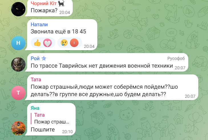 “Таврійськ - ліс дуже сильно горить, після прильоту по русні. Мешканці пишуть, що дихати немає чим. Пожежа наближається до житлових будинків”, - повідомив наш читач.