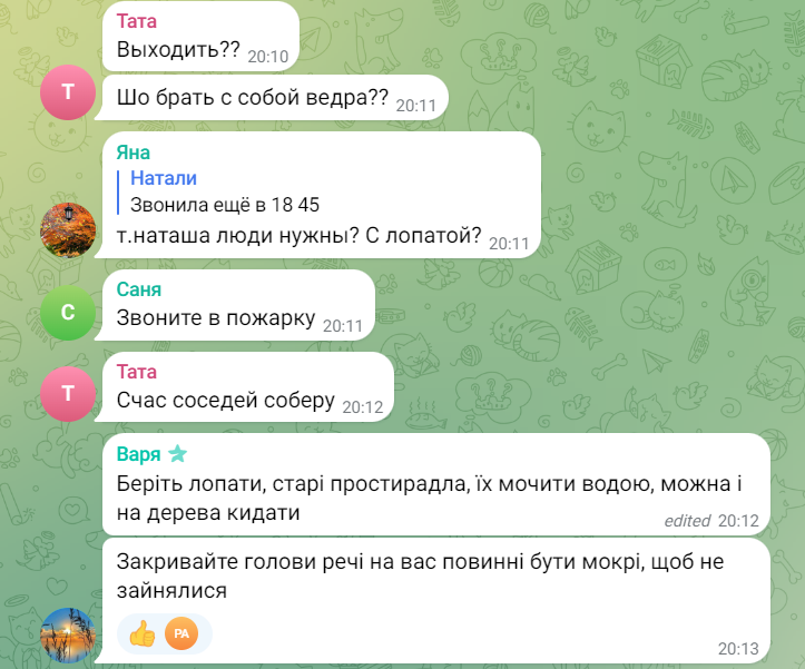 О 20.28 з'явилося повідомлення, що пожежники таки виїхали, але без води. Людям довелося гасити пожежу своїми силами.