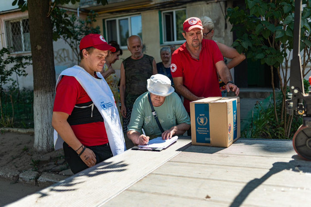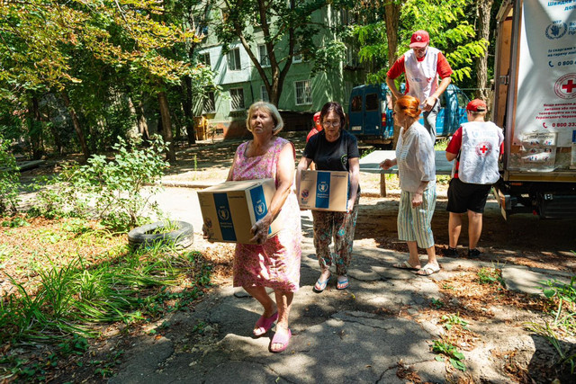 Волонтери Українського Червоного Хреста (УЧХ) передали продуктові набори окремим категоріям жителів Херсона.