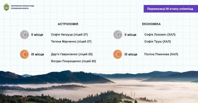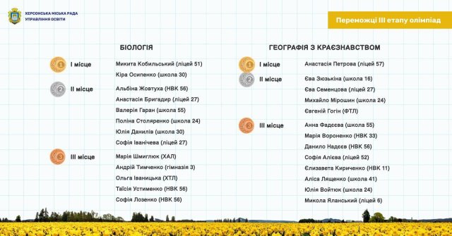 Учні Херсонської громади вибороли 33 призових місця з 4 предметів на ІІІ етапі Всеукраїнських учнівських олімпіад
