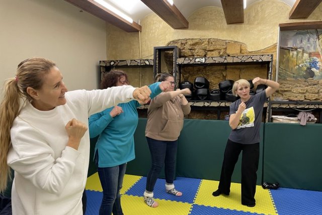 "Це ударна техніка руками та ногами, звільнення від можливих захоплень. Розробили елементарні прийоми, які жінки можуть використовувати для свого самозахисту. Фізична розминка, різні навантаження, тобто кожна жінка сама розраховує свої сили", — говорить старший інструктор.