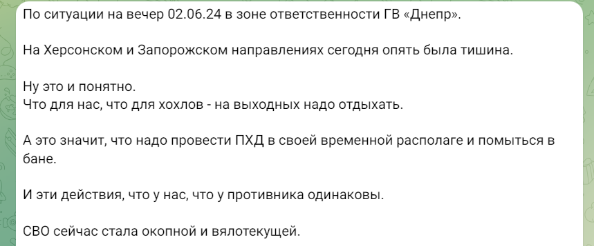 Утім, російський телеграм-канал "ВДВ за честность и справедливость" вказує, що 2 чкрвня в районі Кринків була тиша.