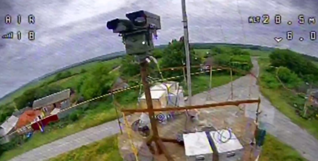 На опублікованих кадрах видно, як "пташка" українського виробництва на швидкості влітає в схований на висоті комплекс дальнього візуального спостереження "Муром-П" окупантів і вибухає.