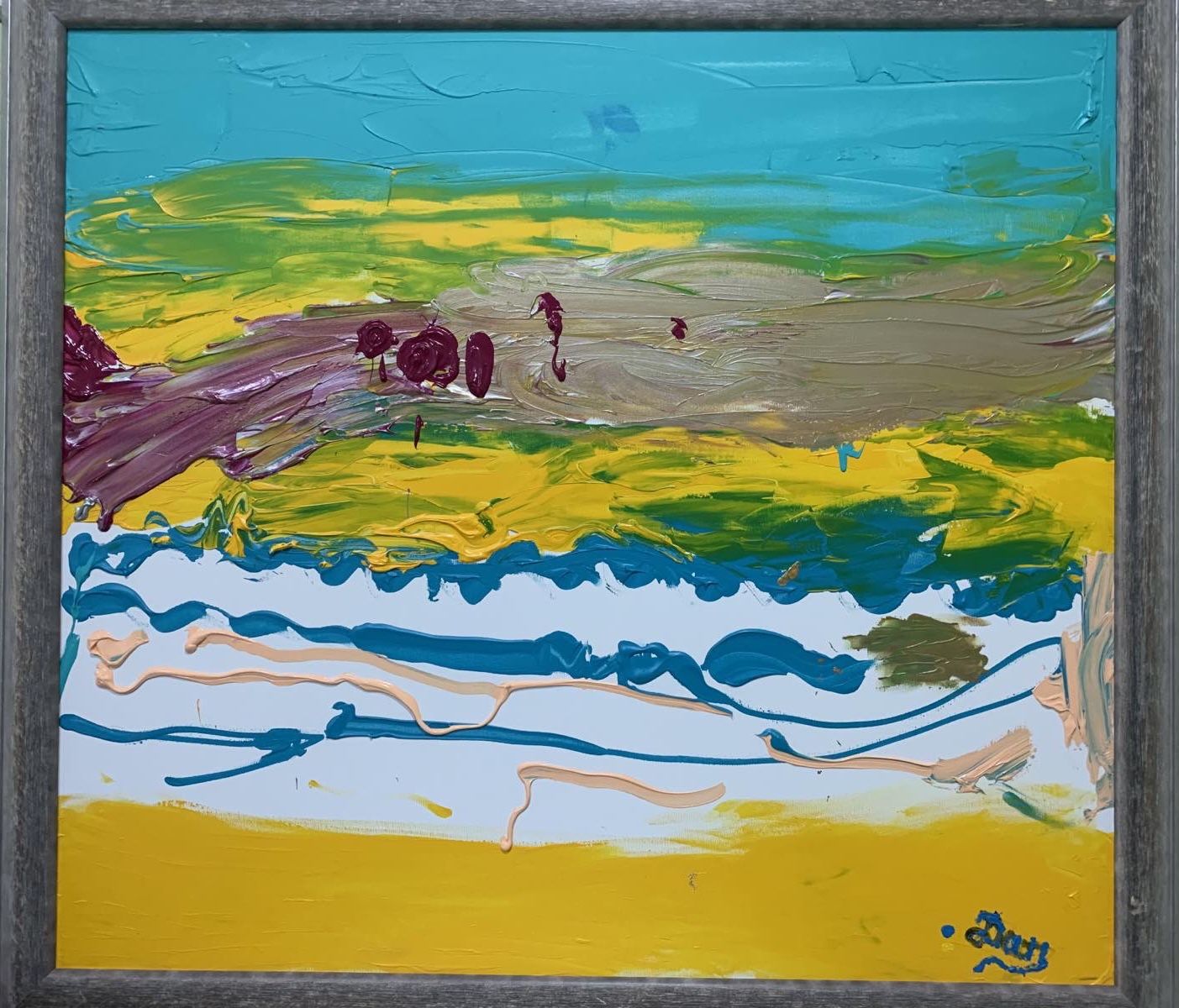 Данило Ноздря «Важкий шлях до Перемоги. Херсон», 2023р., полотно, акрил, 80х100 см.Юному митцю подякувала директорка Херсонського художнього музею пані Аліна Доценко:
