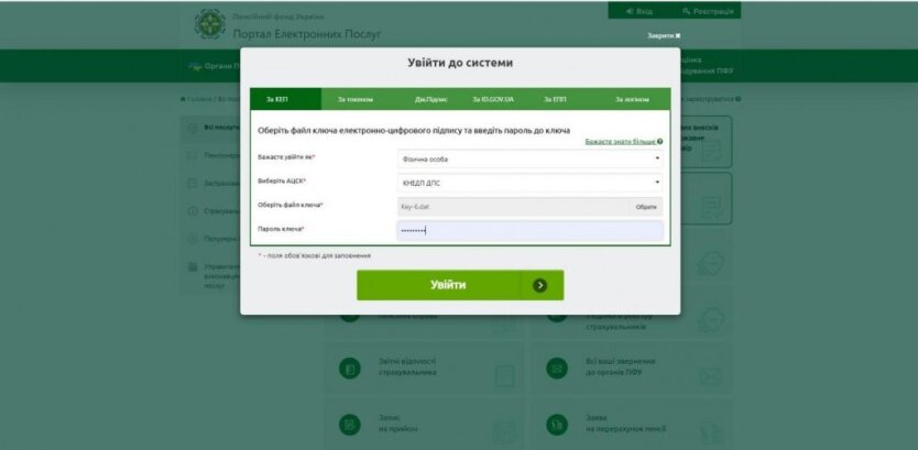 - Зайдіть на портал електронних послуг Фонду та авторизуйтесь зручним способом.
