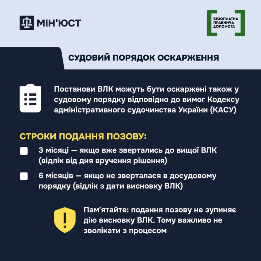 - 6 місяців з моменту отримання висновку ВЛК (якщо одразу звертаєтесь до суду, оминаючи досудовий порядок).