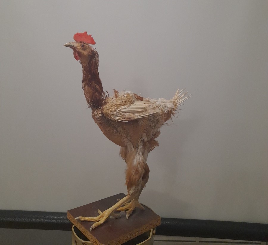 Тоді одна з тих курок потрапила до херсонського таксидерміста Антона Громова, який працює у Херсонському обласному краєзнавчому музеї. Він вирішив увічнити птаха у вигляді чучела.