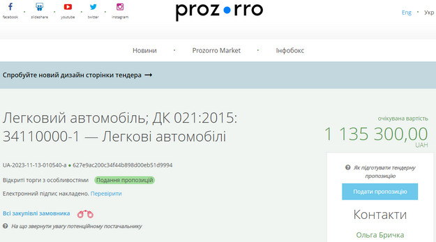 Про це свідчить інформація з порталу державних закупівель Prozorro.