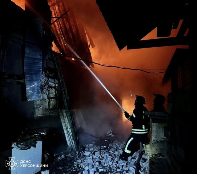 У с.Томарине Бериславської ТГ, після скиду вибухівки з ворожого БПЛА, загорівся приватний житловий будинок. Рятувальники гасили пожежу разом з місцевою пожежною охороною.У м.Херсон від влучання ворожого боєприпасу загорілось перекриття житлового будинку та два автомобілі. Пожежу оперативно загасили.