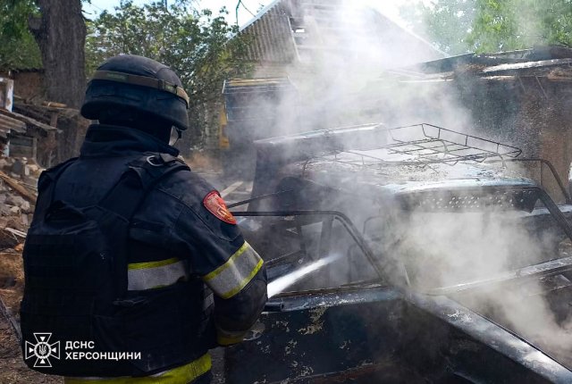 Влучання боєприпасів припали по житлових кварталах міста Херсон та с. Комишани. Горіли приватні житлові будинки, господарча споруда, легковий автомобіль та сухостій.
