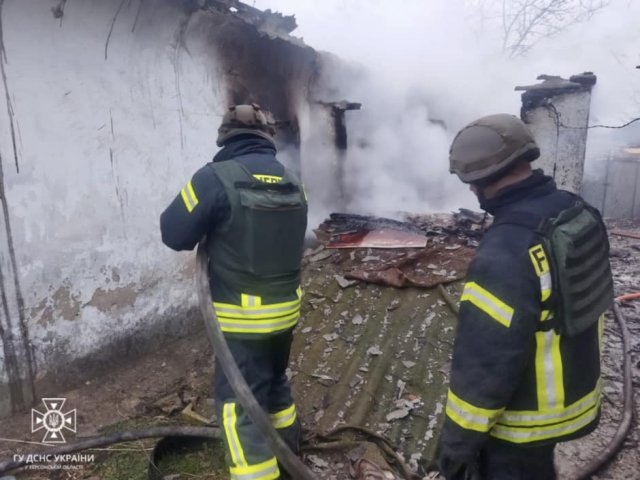 Фото наслідків атаки оприлюднили у соціальних мережах ДСНС Херсонщини.
