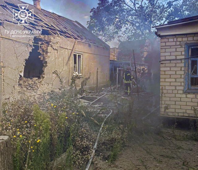 В Бериславі рятувальники загасили пожежу, що виникла внаслідок обстрілу приватного будинка