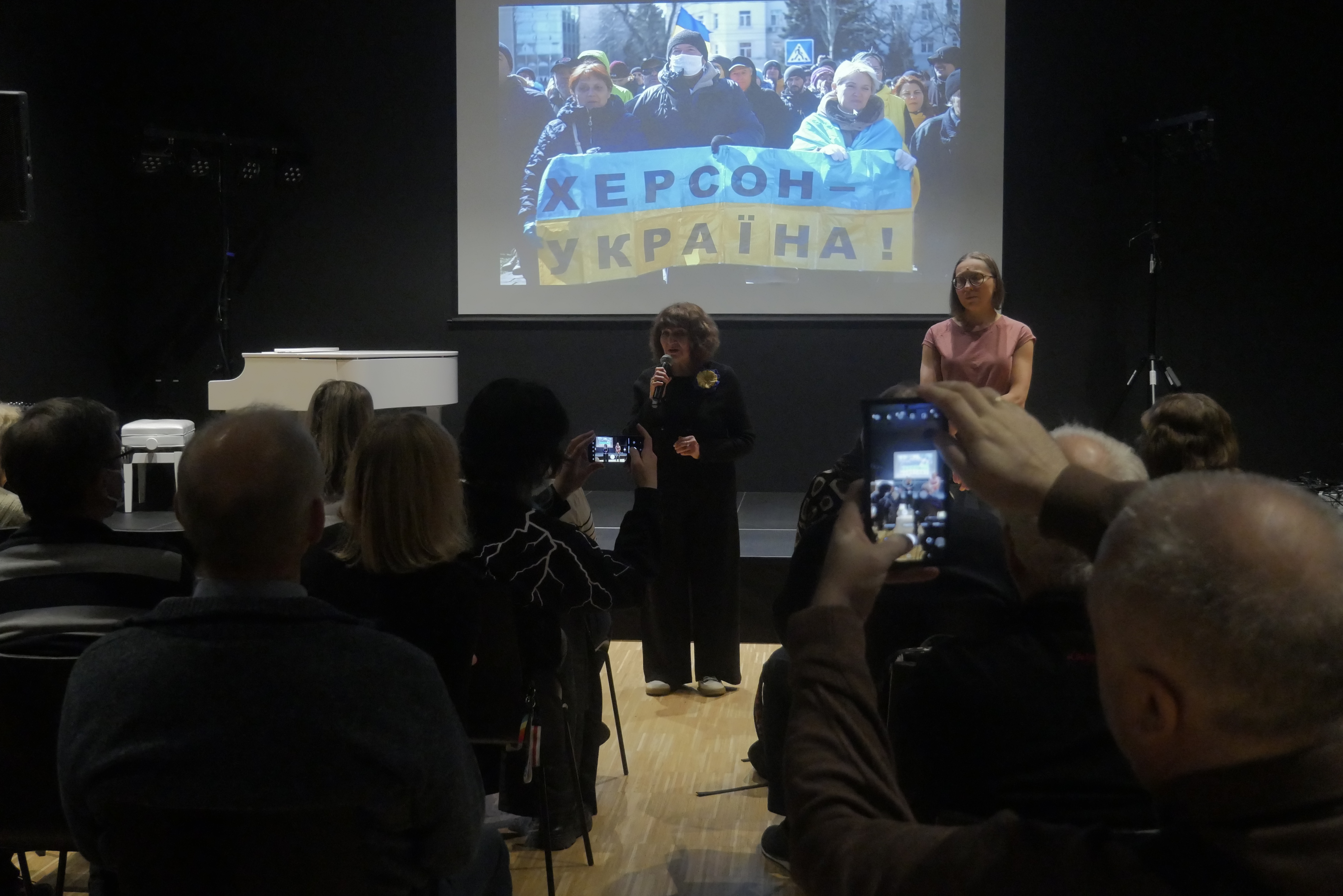 Олена розповіла, що на показ прийшло близько 40 людей, серед них були і естонці, і представники української діаспори в Естонії, і херсонці. Зокрема були представники Конгресу українців, представник посольства та українського земляцтва в Естонії.