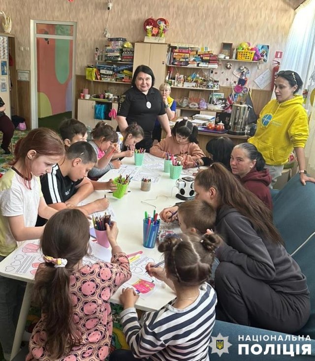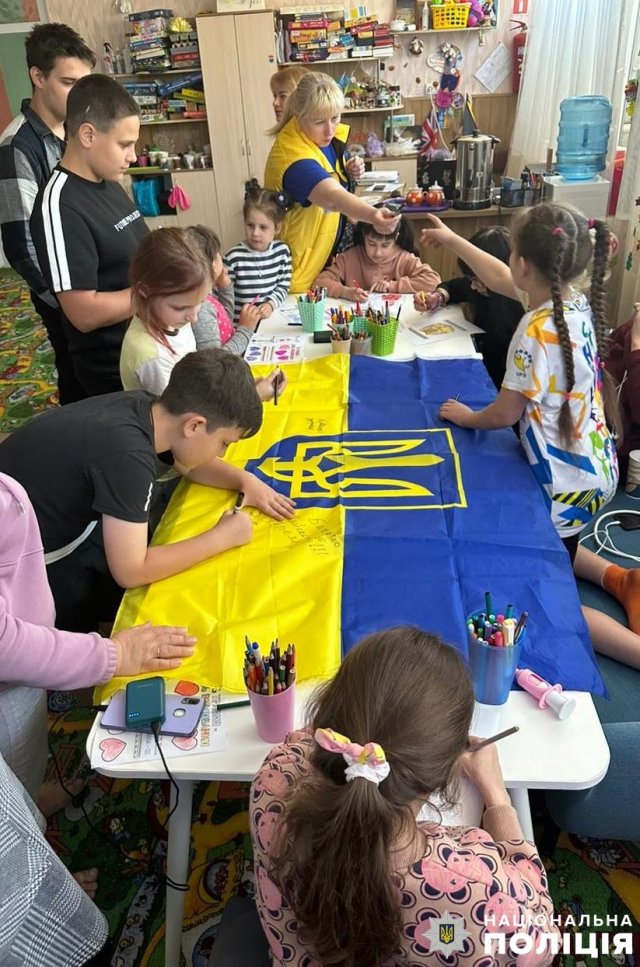 Зважаючи на реалії прифронтового міста, захід відбувся у спеціально облаштованому безпечному просторі, де херсонські діти цікаво та з користю проводять своє дозвілля. Цього разу ювенальні поліцейські підготували завдання для малечі – власноруч зробити поробки, малюнки або написати слова підтримки захисникам України, які потім поліцейські передадуть військовим.