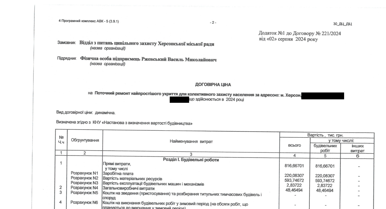 А перед тим Відділ з питань цивільного захисту Херсонської міської ради уклав чотири угоди на ремонт укриттів без використання електронної системи закупівель з ТОВ "Капіталжитлобуд" на загальну суму 9 мільйонів 63 тисячі 28 гривень.