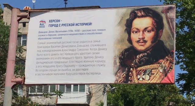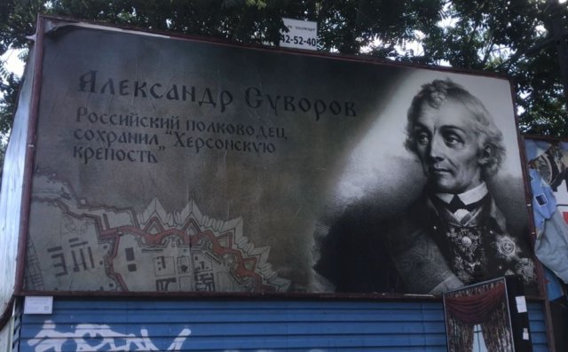 Роісяни увійшли до Херсона, окупувавши його на понад вісім місяців, у 2022 році. Майже одразу вони розмістили по Херсону борди з такими знайомими херсонцям, але вже ненависними «іконами руського миру»: Ушаковим, Суворовим, Пушкіним тощо. І доводи істориків та громадських діячів Херсона про те, що ми маємо шанувати своїх, а не вклонятись російським, набули розуміння у херсонців. Просування російських ідей почалось фактично з обстрілів та нав'язування російських наративів.