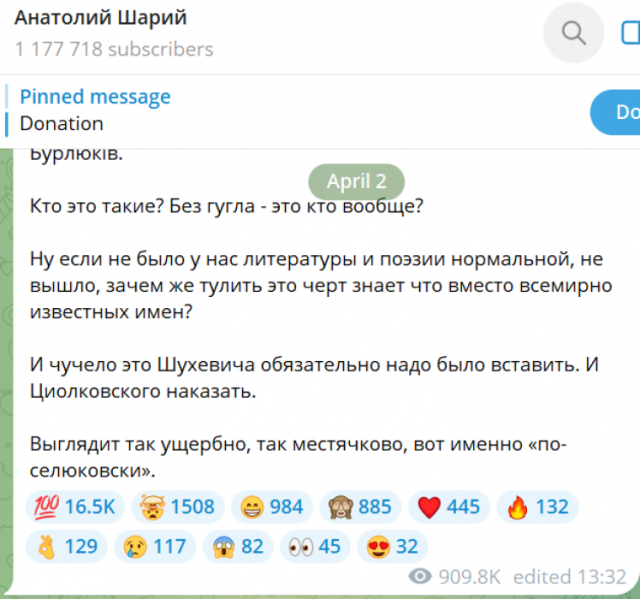 Ймовірно причиною такого збудження став проспект Шухевича, який він не міг не згадати. Така поведінка відверто проросійської людини вказує на те, що Херсон крокує вірним шляхом, вшановуючи власних видатних людей та видатних українців в цілому. Брати Бурлюки, Поліна Райко, Олександр Бережний та інші — це люди, пам'ять про яких умисно стирала російська пропаганда різного періоду.