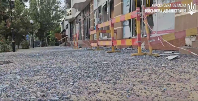 В Херсонській ОВА показали наслідки обстрілу середмістя Херсону з РСЗО