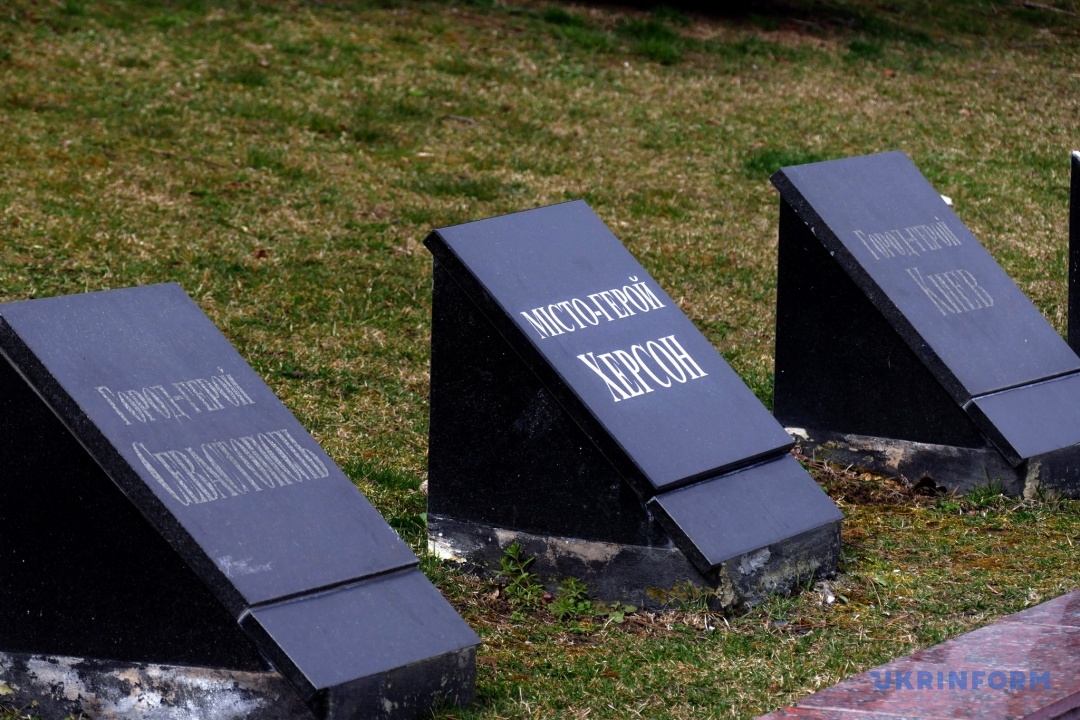 На Алеї Слави, біля пам’ятника Невідомому матросу з'явилася меморіальна табличка «Місто-герой Херсон». Наразі ця дошка є єдиною, на якій напис зроблено українською.
