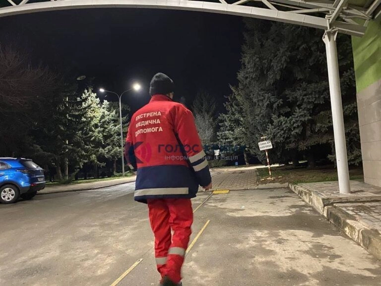 Крім того, працівник швидкої одягнений у комбінезон з написом "Екстрена медична допомога".
