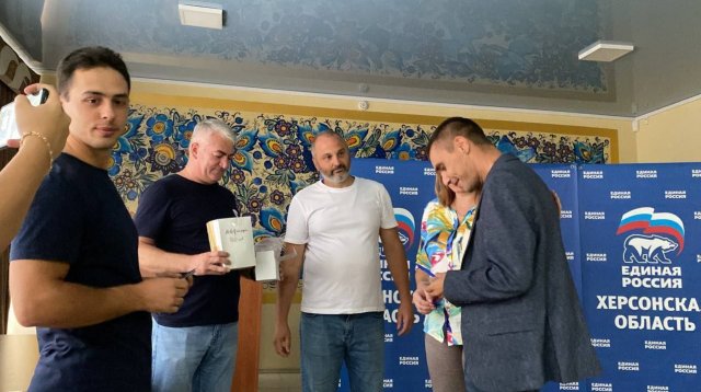 Партійні квитки у формі пластикових карток (на них, мабуть, і гроші за продаж батьківщини окупанти скидатимуть) вручають нині у всіх кутках лівобережжя. Аби додати процедурі «святковості», роблять це фейкові депутати фейкової обласної думи. У Верхньорогачицькому «муніципальному окрузі», наприклад, їх вручав Тамерлан Цаліков, у Скадовському - Оксана Мороз, у Нижньосірогозькому - Харен Габріелян, у Новотроїцькому - Володимир Косов і Павел Тропкін. Останній є не просто «депутатом», а ще і «заступником голови обласної думи» та екс-військовим «Росгвардії», що тероризував населення Кавказу.