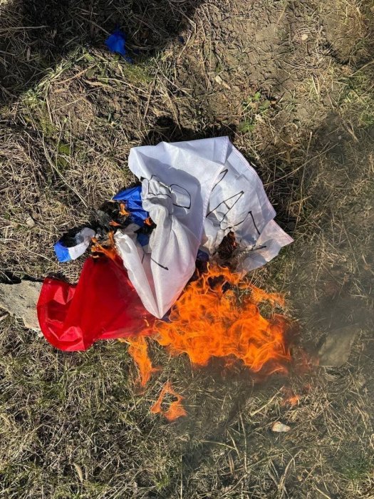 В окупованому Генічеську партизани зняли триколор з адмінбудівлі і знищили його