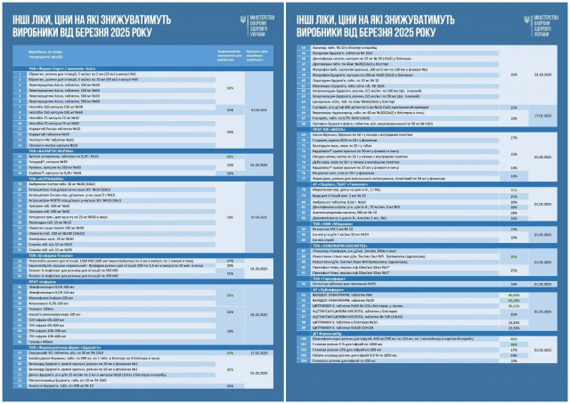 У Міністерстві охорони здоров'я повідомили, що виробники ліків підготували список із 100 препаратів, які подешевшають вже з першого дня березня. А згодом стало відомо, що фармкомпанії підготували новий, де зазначили ще понад сотню найменувань, ціни на які будуть знижені, а також розмір знижки.
