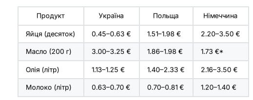 В Україні, Польщі та Німеччині порівняли ціни на продукти: скільки коштують яйця, молоко, вершкове масло та соняшникова олія