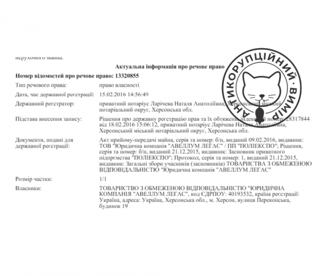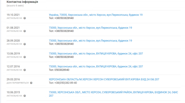 Згодом реєстрацію партії перенесли на вулицю Перекопську, 19. Це приміщення належить ТОВ «Юридична компанія «Авеллум Легас».