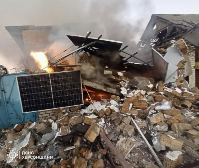 Ворожий боєприпас влучив в житловий будинок, загорілись зруйновані конструкції.Про це повідомляє пресслужба ДСНС Херсонської області.