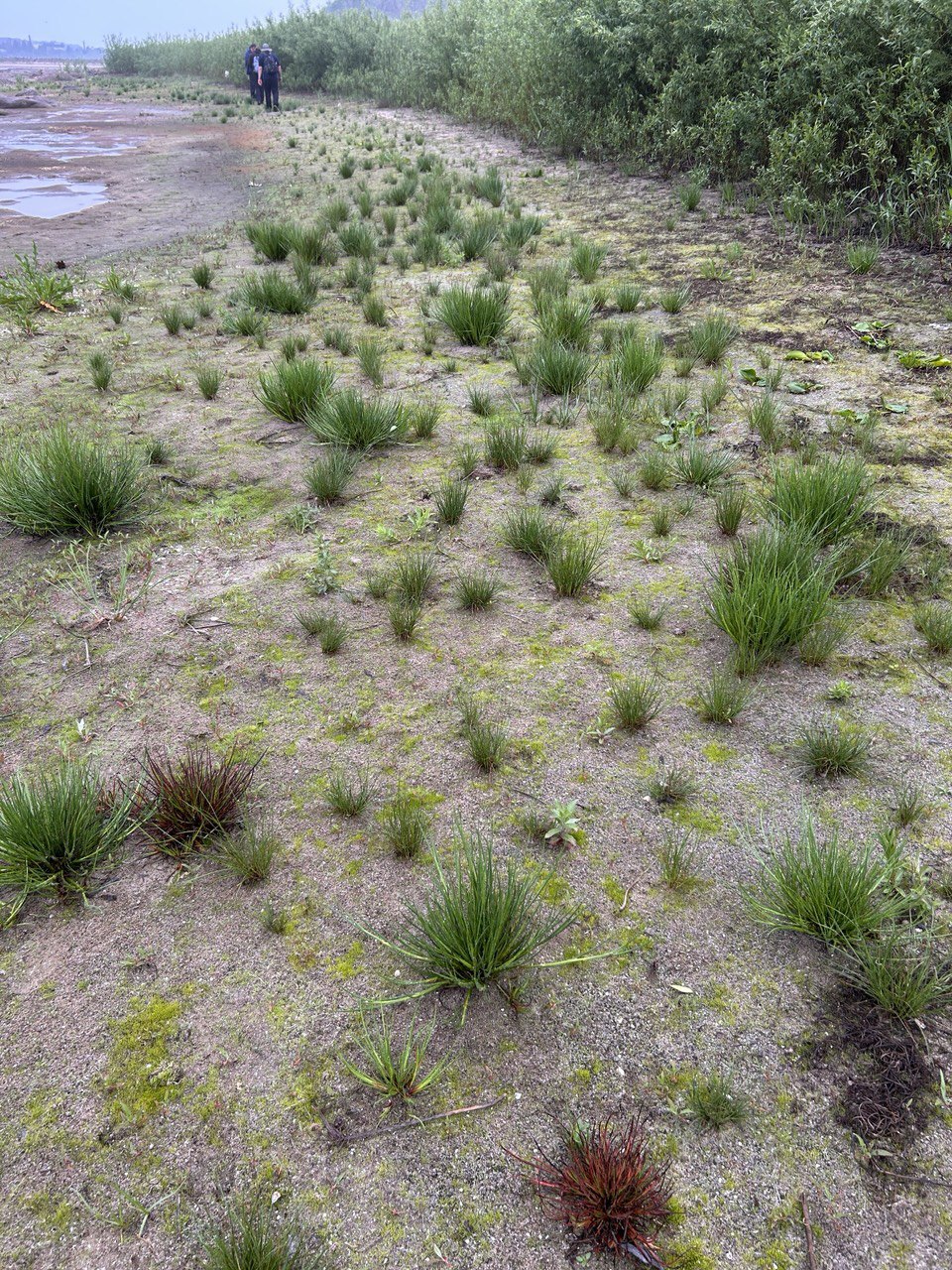 Паралельно різні біотопи, які встигли там сформуватися, насичуються видами (крім черепашкових відкладів, які в цьому найповільніші). Тож чи не першим враженням від побаченого було те, як багато рослин додалося. Йдеться і про інвазійні види, і про багато типових лучно-болотних рослин. З'явилися осоки, ситники, смикавцеві. Нарешті проявили себе і види, характерні для лучних ділянок, яких у попередніх експедиціях майже не спостерігали, приміром: жовтець повзучий, тонконіг. Червонокнижну осоку житню, яку минулої експедиції знайшли тільки в одній локації, тепер бачили і в інших місцях.