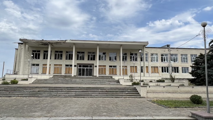 Тут же, в центрі неподалік стоїть пусткою пошкоджена опорна школа. Представник військової адміністрації каже, що кошторисна документація з її відновлення вже подана до Фонду ліквідації наслідків збройної агресії.