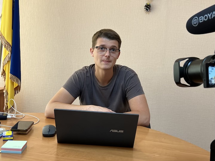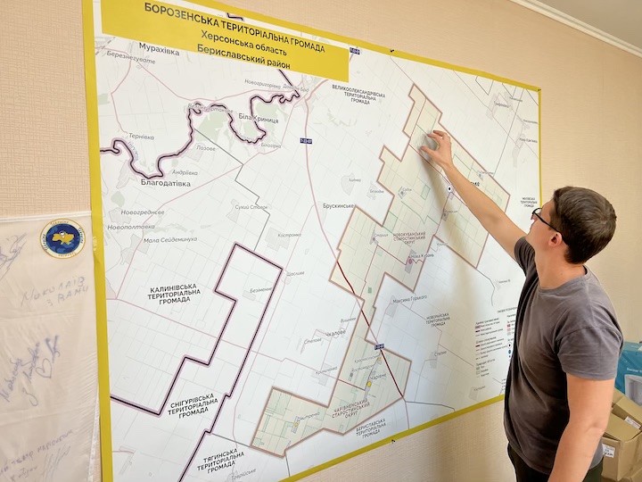 Семен Мощенський біля мапи громади. Фото: Олег Батурін/ЦЖР