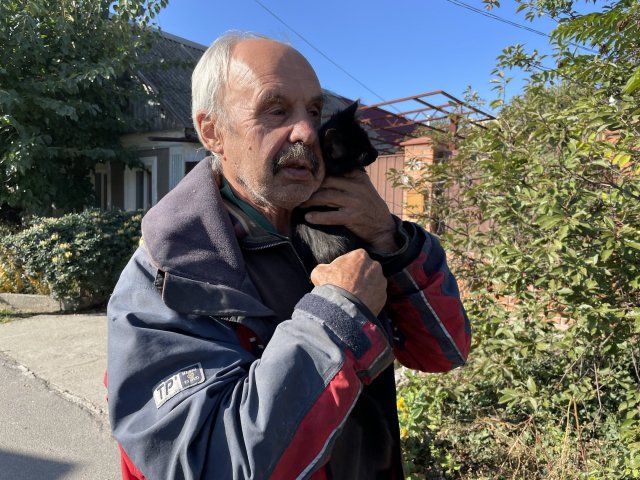 Чоловік говорить, що дуже злякався його кіт. Після обстрілу ледве його впіймав, щоб заспокоїти."Тільки смеркалося, я зайшов, хотів увімкнути світло, як шарахнуло. Скло полетіло. Я не знаю хто де ховався, поки били по нас. Потім трохи притихло, то почали виходити, дивитися. Газ травив, то дзвонили, щоб закрутили. Воду також", — розповів Юрій.
