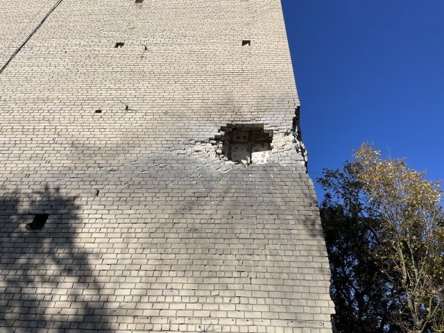 Російські снаряди пробили стіну у багатоквартирному будинку. Пошкоджені балкони та вибиті вікна, розповідає місцева жителька Віра."Десь о пів на восьму почалось. До дев'ятої ми ховалися. Такі вибухи були страшні. А потім почалося десь близько 10:00 Ще раз довбануло о пів на 11:00. Усього десь разів 15 точно було", — згадує жінка.