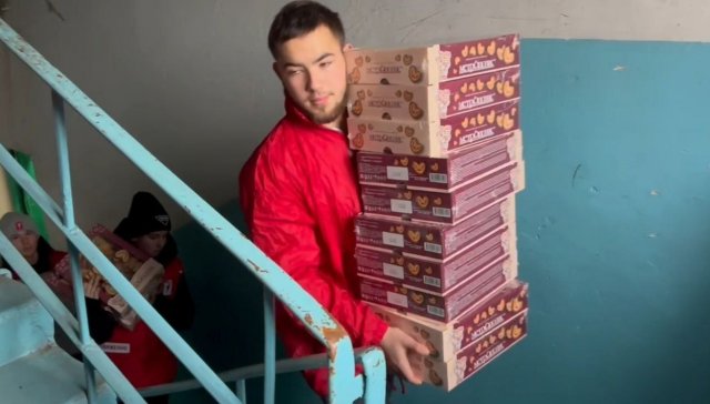 Гауляйтерка Євгенія кузьменко, яка зустрічала вантаж, повідомила пропагандистам, що подарунки «частково підуть на район», а ще - військовим і у «15-кілометрову зону».