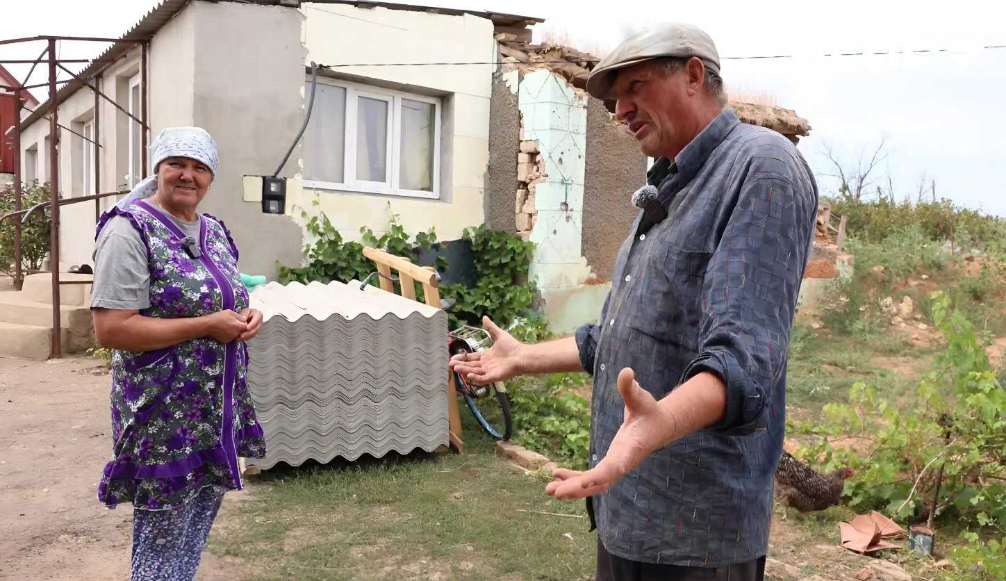 Жителі Білогірки Тетяна і Сергій на своєму подвір’ї. Кадр з відео Олександра Андрющенка/”Вгору”